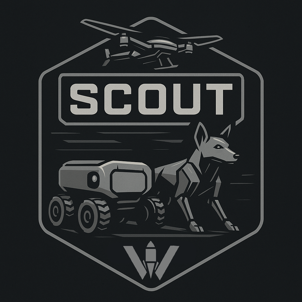 SCOUT is a modular open robotic reconnaissance system for harsh environments, developed for search & rescue, education, and field robotics. The system consists of three cooperative units: a wheeled base (Crawler), a quadruped robot (Fox), and an aerial drone (Raven).